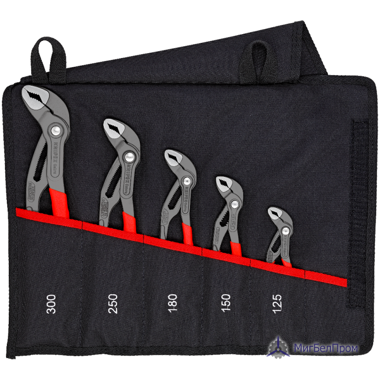 •  Оснащен высокотехнологичными сантехническими клещами KNIPEX Cobra® в пяти вариантах длины - от 125 до 300 мм